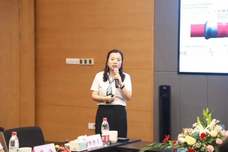 玫德集团董事局副主席亓晓玉发表致辞,他表示,随着装配式建筑的发展和人口红利的消失,市场对快捷清洁产品解决方案的呼声越来越高,玫德集团紧跟时代发展,不忘初心和使命,一直致力于流体领域前沿技术的研发,为了满足市场需求,尽快将快装技术惠及广大用户。21年集团投资成立了玫德雅昌(济南)管业有限公司,主要生产单卡和齿环卡压产品,为进军国际市场,我们第一时间启动了UL等高端产品认证。本次通过UL认证的卡压式连接管道产品,经过了UL的弯矩测试、泄露测试、静水压力测试、防火测试、振动测试、管道流量特性等测试项目,系统地验证了产品的综合性能,我们产品经也受住了各项考验,值得广大用户信赖。卡压产品有效地提高了管道系统安装和维修效率,其中不锈钢材质的洁净性能成为高端商业和食品安全领域的明星产品。卡压工艺以其技术领先性,在国内外应用领域非常广泛,市场前景广阔。卡压产品的独特优势必将使其成为新型管道的革新者和领跑者。该产品的研发对玫德集团意义重大,是我们集团转型升级、迈向高质量发展的重要举措,进一步拓展了我们流体产品生产模式及产品范围,提高了我们一站式产品供应能力和提供流体解决方案的能力。