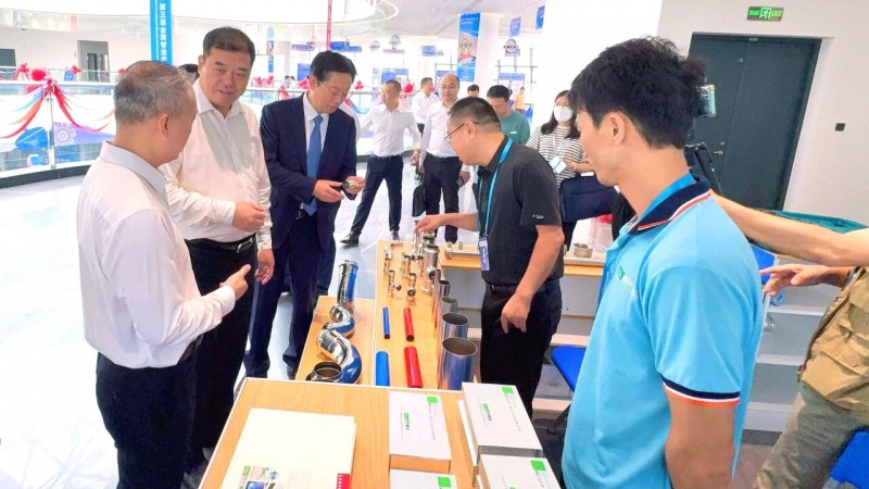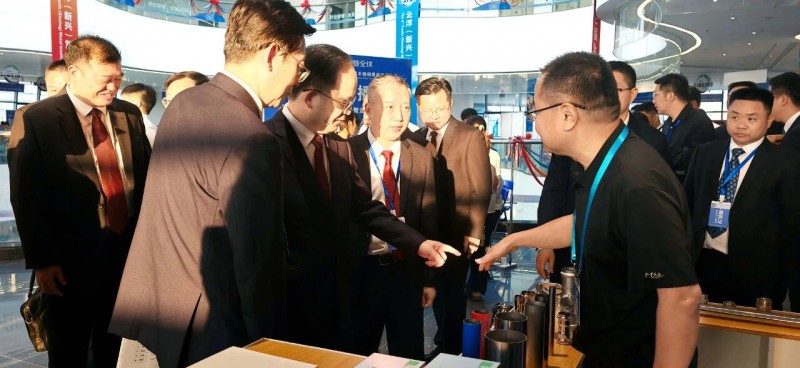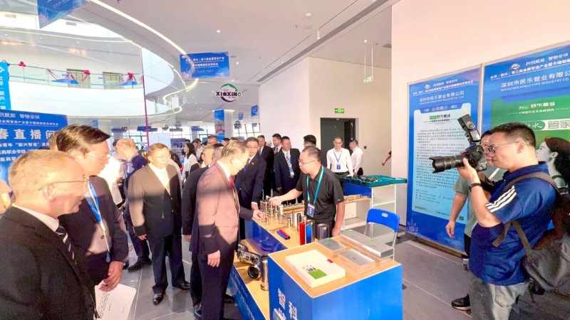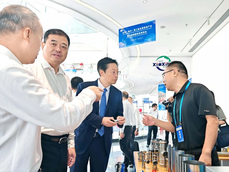 中国(广东云浮)-RCEP 第三届产业合作大会期间,云浮市委书记卢荣春、市长李庆新、市委副书记杨骁婷等市领导,与广东省不锈钢材料与制品协会会长林泽榆及参会嘉宾一同巡馆,并参观了民乐管业的展位。