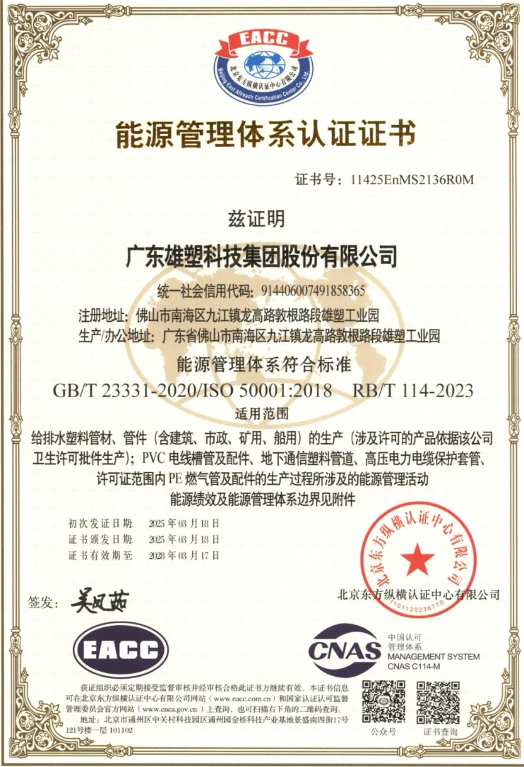 顺利通过“社会责任管理体系”与“能源管理体系”双认证,彰显了雄塑的社会担当。前者有助于提升企业品牌形象与市场认可度;后者则通过优化能源利用效率、降低运营成本,为行业节能减排树立典范。
