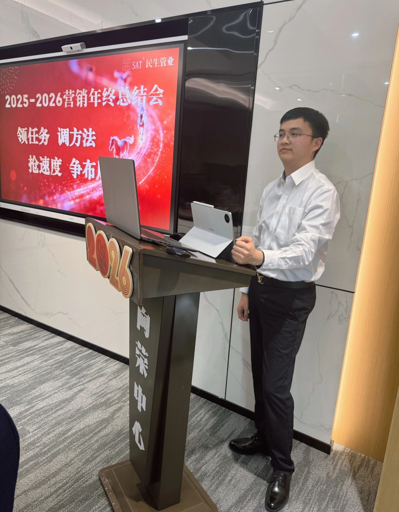 民生管业各大区销售代表围绕 2025 年个人销售工作分享成功经验和教训,并结合平台优势、品牌优势与个人优势,提出2026年销售目标及落地战略构想,为新一年市场攻坚明确方向。