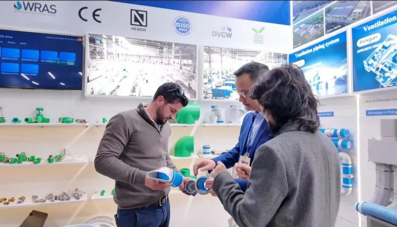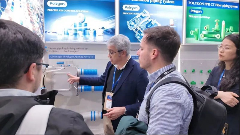 针对欧洲市场对绿色建筑标准、能效认证及系统兼容性的高要求,Polygon在本次展会上重点展示了多款契合绿色建筑理念的产品,涵盖环保性高、耐用性强的PPR给水管道、PE-Xb/PERT及铝塑暖通管道、新风管道、不锈钢阀门与管件等系列产品。